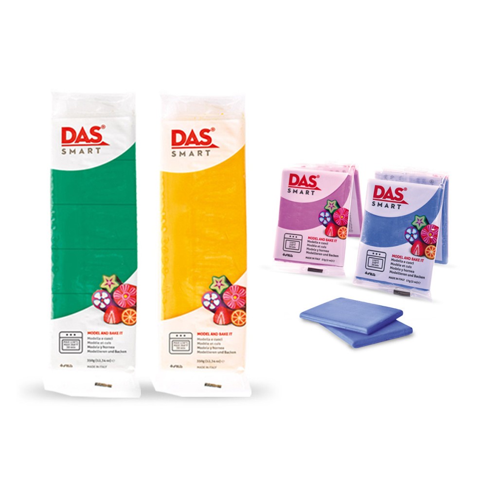 Facile da manipolare, con una struttura compatta e versatile, DAS Smart è la nuova pasta da modellare termoindurente a base di PVC, che non macchia le mani. È Ideale per realizzare murrine, creare gioielli e piccoli manufatti. Si cuoce in forno a 130° per un massimo di 30 minuti, ma gli oggetti si possono cuocere più volte per aggiungere nuovi dettagli. Il panetto da 57 g è confezionato in un innovativo pack composto da 2 panetti sigillati singolarmente, appositamente studiato per una maggiore praticità e conservazione per evitare gli sprechi, è disponibili in 42 colori, vivaci e moderni, tutti combinabili fra loro. E per una grande creatività, è disponibile anche in maxi pack da 350 g in 6 porzioni pretagliate, con pratica confezione apri e chiudi, in 10 colori standard.