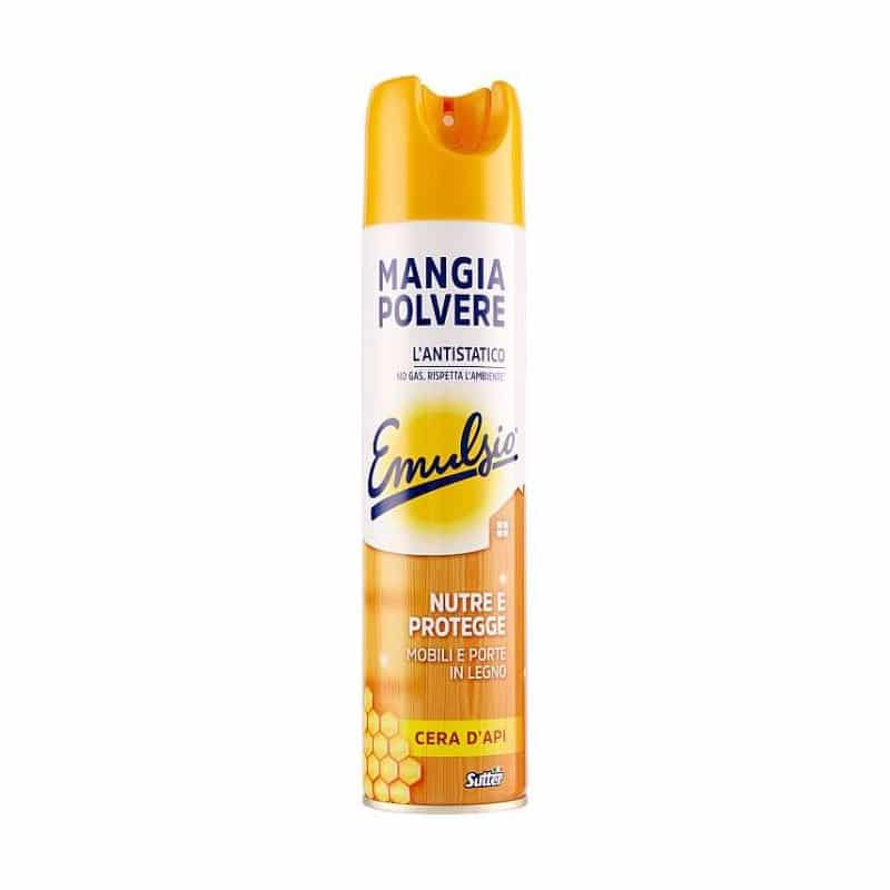 Mangia Polvere Emulsio elimina la polvere senza disperderla nell’aria e rimuove anche gli allergeni in essa contenuta che possono causare fastidiose allergie. Grazie agli agenti antistatici lascia sulle superfici trattate una barriera invisibile che rallenta il formarsi della polvere per giorni.