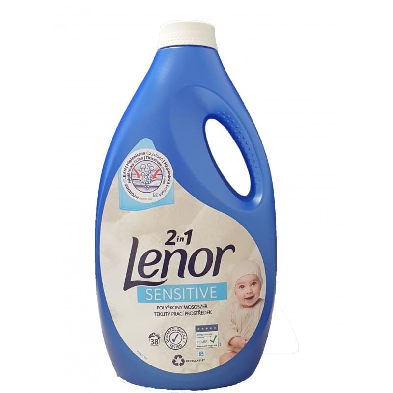 Il detergente liquido Lenor Sensitive ti sedurrà con il profumo fresco del bucato brillantemente pulito. Adatto al lavaggio degli abiti dei bimbi.