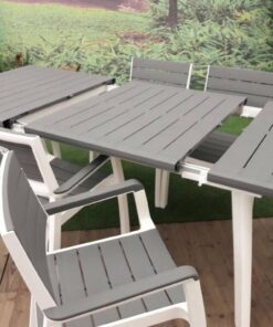 Set Harmony in Resina grigio e bianco composto da tavolo allungabile e 6 poltrone con stampo finto legno