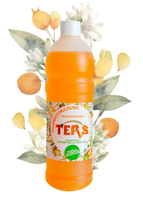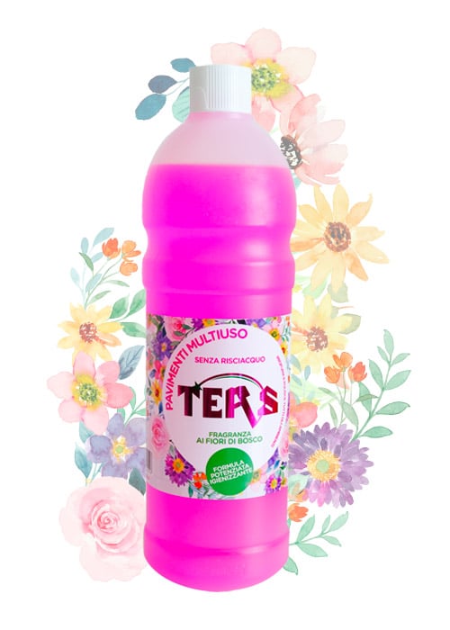 TERS Pavimenti non contiene ammoniaca ed emana un avvolgente profumo lasciando superfici lucide senza aloni.