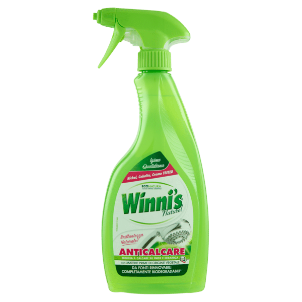 Winni’s Anticalcare agisce efficacemente contro sporco e calcare lasciando le superfici brillanti. Nella pulizia quotidiana Winni’s Anticalcare è specifico per acciaio inox e ceramica in tutti gli ambienti domestici: dai lavelli in acciaio in cucina, ai lavandini e vasche in ceramica bianca in bagno, fino al box doccia e rubinetterie.